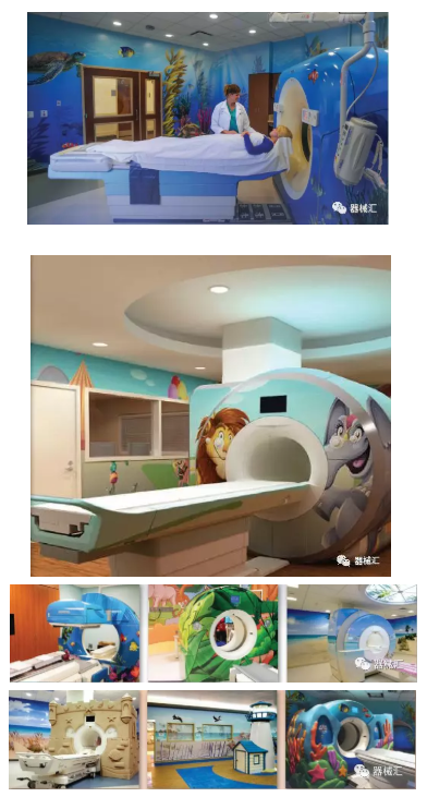 Dream Think Imagine(DTI)和Character Farms都是提供此類產(chǎn)服務(wù)的公司,他們專門制作3D外觀,像皮膚一樣包裹在影像設(shè)備上,把設(shè)備變成幾乎認不出來的物品。無論是為兒童建造的城堡主題,還是為成人營造的顏色和照明交互的良好氛圍,都可以幫助患者在醫(yī)療檢查中保持更為平靜的情緒。