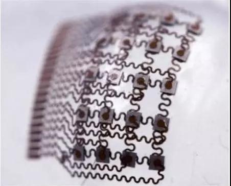 圣迭戈分校研究團(tuán)隊(duì)研發(fā)的這種貼片是一種硅橡膠薄片,薄片上是由蛇型導(dǎo)線連接的大量電子元件(也就是我們所說的島橋結(jié)構(gòu))。每一個(gè)原件“島”都含有低壓式轉(zhuǎn)換器,當(dāng)電流通過時(shí)就會(huì)產(chǎn)生超聲波。