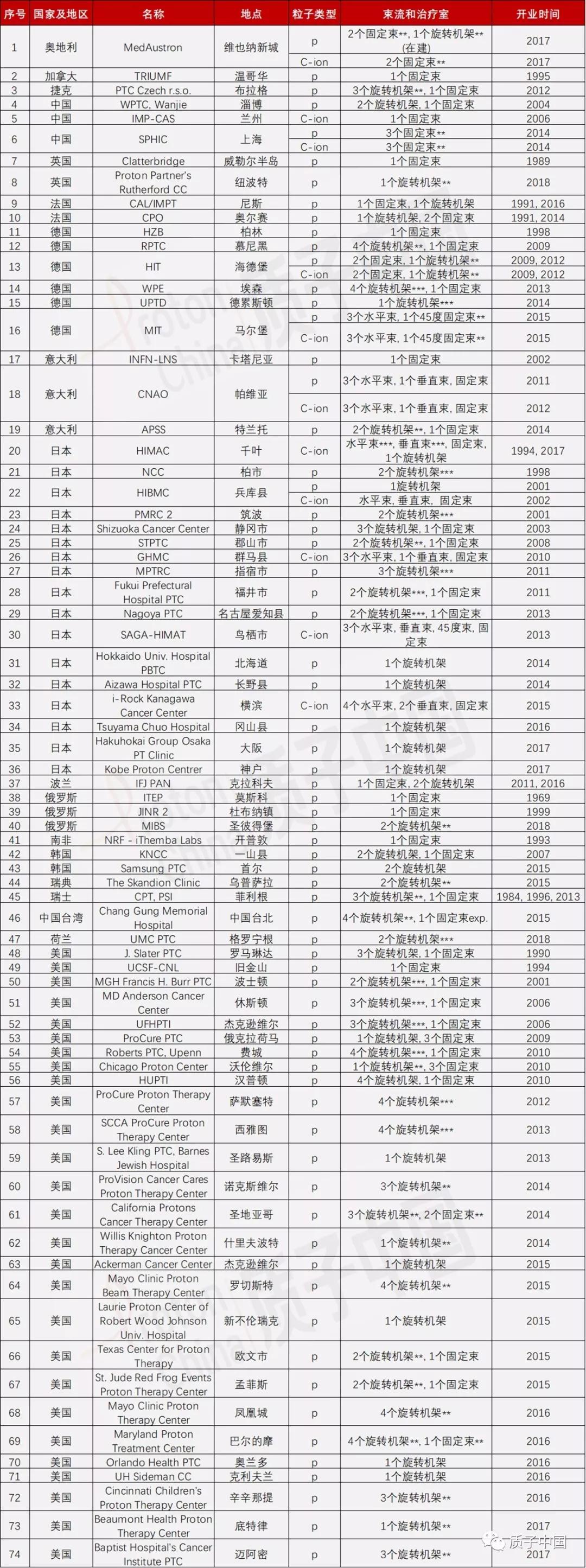 附:全球已運營質子重離子治療中心匯總表(截至2018年7月)