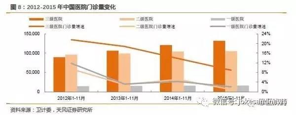 注:2015年醫(yī)院數(shù)量衛(wèi)計(jì)委只有1-11月數(shù)據(jù),但不影響整體趨勢(shì)和判斷。