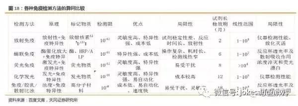 化學(xué)發(fā)光大部分項(xiàng)目為三類注冊(cè),由儀器試劑組成封閉系統(tǒng),無開放系統(tǒng),技術(shù)門檻高,準(zhǔn)入難,具有先天護(hù)城河優(yōu)勢(shì)。化學(xué)發(fā)光屬于體外診斷子行業(yè)中的免疫分支,臨床免疫廣義包括以抗原抗體結(jié)合為原理的所有產(chǎn)品,包括化學(xué)發(fā)光、酶聯(lián)免疫、膠體金、放免、生化中的免疫比濁和膠乳項(xiàng)目、特種蛋白儀等。狹義的臨床免疫通常指化學(xué)發(fā)光,該名稱取決于其方法學(xué)信號(hào)檢測(cè)的特點(diǎn)。不同的免疫學(xué)方法有不同的應(yīng)用場(chǎng)景和優(yōu)劣勢(shì),具體如下表所示: