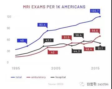 到2016年,平均每1千名美國(guó)人大約接受了121次MRI掃描檢查。而在加拿大和澳大利亞,這一數(shù)字分別是56和43次。最近的觀點(diǎn)是MRI是美國(guó)過(guò)于昂貴的醫(yī)保支付系統(tǒng)的終極力證。成為了拖垮美國(guó)醫(yī)保費(fèi)用的“原罪”之一。