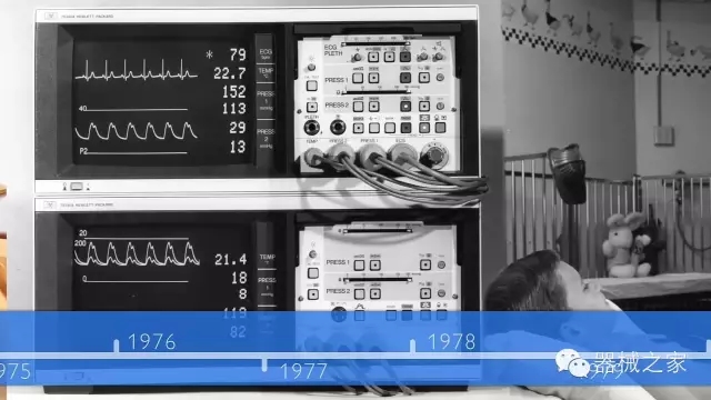 HP (后被飛利浦公司收購)病人監(jiān)護(hù)儀始于1973年,那時的中央站還有攝像頭能觀察到病人情況,好先進(jìn)啊