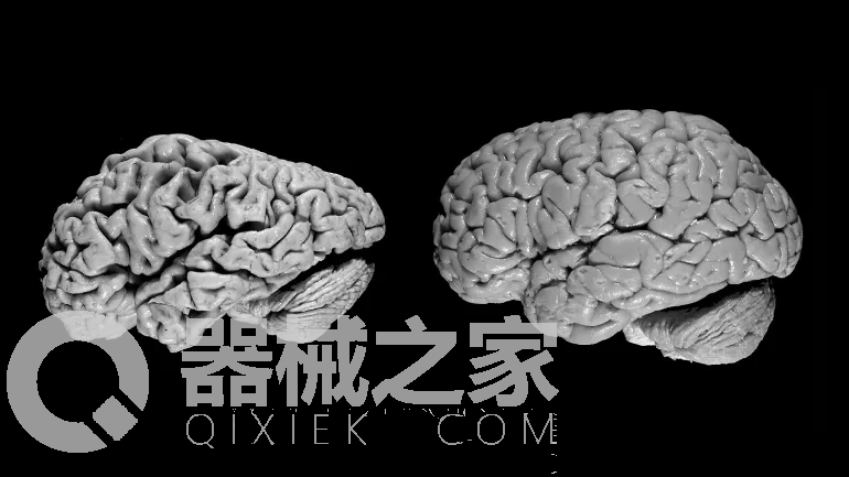 阿爾茨海默癥患者的大腦(左)與未患此病的患者的大腦進行比較。
