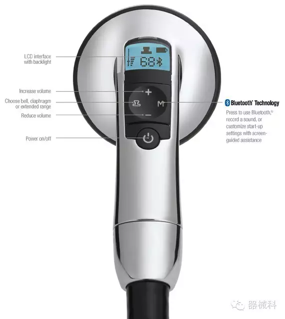 2009年,電子聽(tīng)診器的發(fā)展達(dá)到了新的巔峰,Littmann®3200型電子聽(tīng)診器(上圖)出現(xiàn)在世人面前。這是首個(gè)運(yùn)用藍(lán)牙技術(shù)的電子聽(tīng)診器,它能夠?qū)⑿呐K、肺部和其他身體器官的信號(hào)無(wú)線傳送到醫(yī)師使用的電腦,并通過(guò)Cardioscan軟件實(shí)時(shí)地將聲音曲線顯示在電腦屏幕上,更準(zhǔn)確地揭示患者心臟可能存在的異?,F(xiàn)象。隨后,軟件會(huì)對(duì)聲波曲線進(jìn)行分析,并將代表有害雜音的異常部分的細(xì)節(jié)突出顯示出來(lái)。醫(yī)師能夠?qū)⒒胤潘俣冉档鸵话雭?lái)更仔細(xì)地分析問(wèn)題,還能將文件保存到患者的檢查結(jié)果中,并通過(guò)電子郵件和Scope to Scope遠(yuǎn)程聽(tīng)診軟件,將其發(fā)送給心臟病專家來(lái)確認(rèn)診斷結(jié)果。這套系統(tǒng)不僅能夠準(zhǔn)確捕捉到危險(xiǎn)的雜音,還能減少更為昂貴心電圖檢查費(fèi)用和不必要的心臟病專家的診療工作。從此傳統(tǒng)的電子聽(tīng)診器變成了先進(jìn)的醫(yī)療工具,取代了醫(yī)師對(duì)心臟雜音的猜測(cè),提高了診斷能力。隨后3M公司推出了一系列改良產(chǎn)品......目前這方面3M公司的最新產(chǎn)品是Littmann4100系列(下圖)