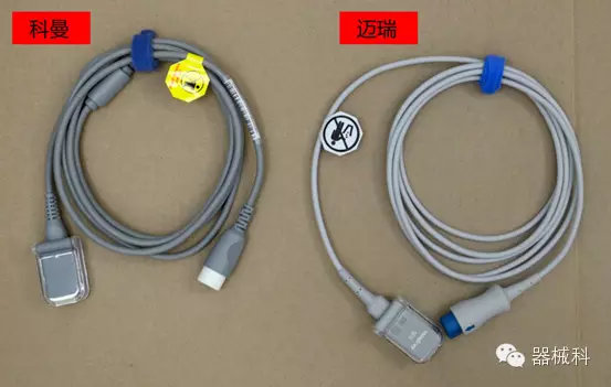 兩家使用的血氧探頭有明顯的區(qū)別??坡目瓷先ジ~瑞的設計看起來新超大氣,顏色更白。不知道用久了,會不會發(fā)黃變色??戳艘幌绿筋^的發(fā)光管和接收管,居然是一樣的,從發(fā)光管和接收管的外形上看用的都是OSI的,看來在這一點上大家都比較認可這家頂級老牌生產的管子。用手指感受了一下兩家的探頭,邁瑞的選用的材料比較柔軟,在感受上比較舒適,科曼的探頭襯墊手感上要硬朗一些,不過也不會有任何的不適。
