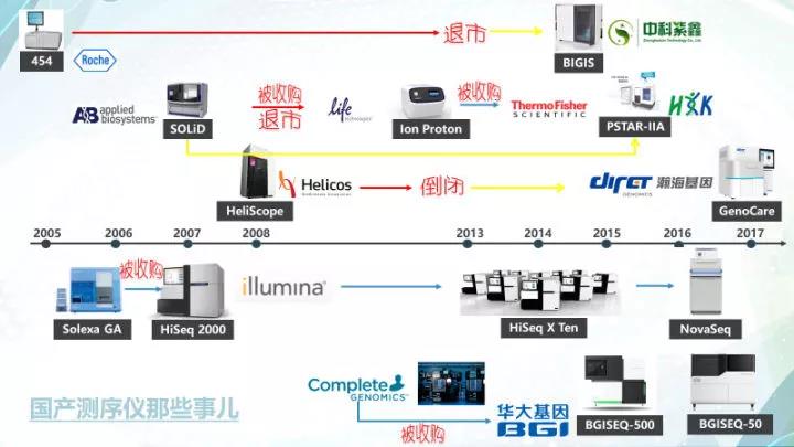 不夸張的說,天下測序出美國(部分技術源自英國),美國的Illumina公司依然是當今測序界的龍頭老大。不過也不是歐美的東西就是好的,如前所述,Helicos公司因為測序儀讀長短、價格貴等原因已于2012年破產(chǎn)倒閉,SOLiD和454測序儀也由于讀長短和測序通量底等原因相繼退出了二代測序儀的市場競爭,而GenoCare、PSTAR-IIA、BIGIS三款國產(chǎn)測序儀正是分別基于以上的三種測序原理研發(fā)而成。用國外已經(jīng)淘汰的技術在國內搖身一變?yōu)樽灾餮邪l(fā),你們開心就好啊。