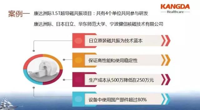 這個項目共有4個單位共同參與研發(fā)和產(chǎn)業(yè)化,分別是康達洲際、日本日立、華東師范大學(xué)、寧波健信核磁技術(shù)有限公司,研發(fā)的產(chǎn)品則是以日立1.5T超導(dǎo)磁共振為基礎(chǔ)上進一步升級——一臺完全與世界最先進技術(shù)同步的磁共振設(shè)備。