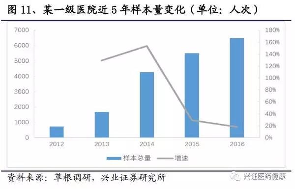 分級診療是近些年國內(nèi)醫(yī)療界的重要課題,2015年國務院發(fā)表指導意見,以提高基層醫(yī)療服務能力為重點,以常見病、多發(fā)病、慢性病分級診療為突破口,完善分級診療制度。在2017年兩會再次重申,在2017年底前要完成85%的覆蓋率。將來,明確診斷將作為基層醫(yī)院承擔的重要任務,而今基層醫(yī)院缺乏專業(yè)檢驗人員和檢驗設備的現(xiàn)狀,將使得近幾年基層檢驗需求呈井噴式爆發(fā)。