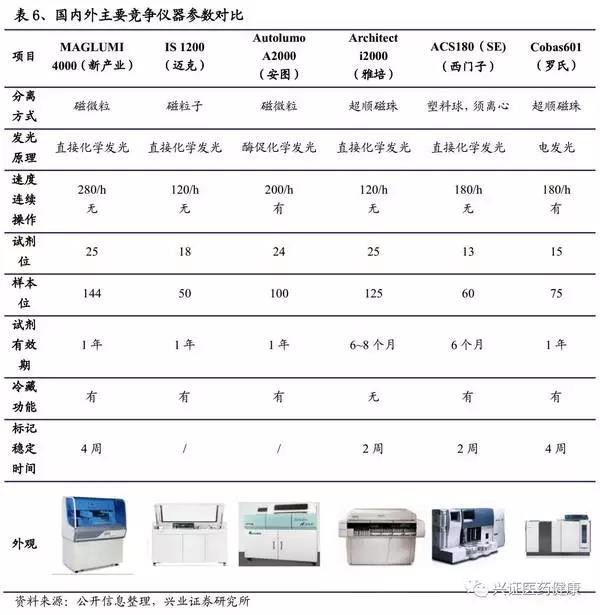 從以上進程可看出,技術到位、價格優(yōu)勢以及找準市場切入口是其完成進口替代的關鍵。發(fā)光行業(yè)與生化行業(yè)有其區(qū)別,發(fā)光本質(zhì)為免疫反應,各廠家的技術平臺完全不同,為保證結果的準確性和穩(wěn)定性,將迫使檢驗人員使用同一廠家提供的試劑和分析儀。在各大醫(yī)院對于各個項目的檢查都基本專機專用,未來也很難將其開放化。所以,在發(fā)光的進口替代進程中,試劑和儀器的一體化研發(fā)是必須的。國內(nèi)化學發(fā)光龍頭企業(yè),例如,新產(chǎn)業(yè)、安圖生物、邁克生物等都具備試劑和儀器的一體化研發(fā)能力。參考生化的替代道路,5年內(nèi)將爆發(fā)大規(guī)模進口替代。