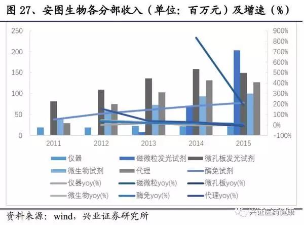 安圖生物1999年在河南鄭州成立,于2016年8月在上交所上市。公司主要產(chǎn)品包括免疫診斷、微生物檢測兩大類。其中免疫診斷以化學發(fā)光試劑及儀器為主,磁微?;瘜W發(fā)光分析2013年上市,是目前業(yè)務增長的核心領域。