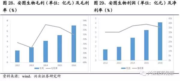 安圖生物業(yè)績成長迅速,2012年至2016年增速均保持25%以上,營收CAGR為32.5%。2016年實現(xiàn)營業(yè)總收入9.8億元,同比增長36.87%。其中,磁微粒發(fā)光試劑從2013年起產(chǎn)生收入,2015年收入達2億元,增速大于100%。
