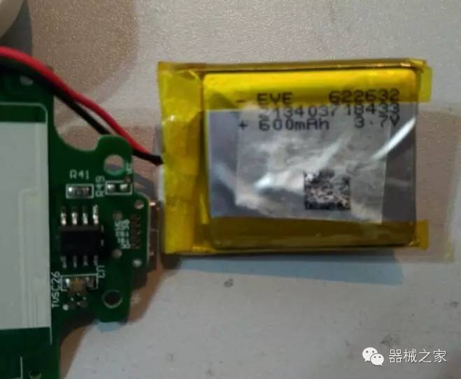 故可知:產(chǎn)品藍牙廣播間隔(Interval)160ms,手機連接需用時320~540ms,可以看出,脈搏波設(shè)置的廣播間隔很短,可以設(shè)置這么短間隔,可能是因為廠商使用了一塊容量相對較大的電池吧。電池使用的是聚合物鋰電池622632型號,容量600mAh。